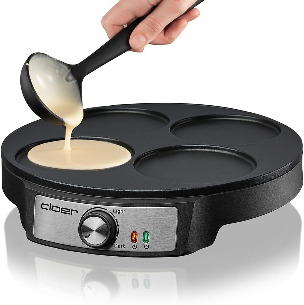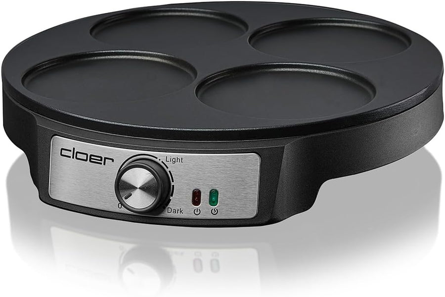Cloer 6625 Pancake Maker, Mini Pancakes, für 4 kleine Pfannkuchen je 11 cm Ø, 1200 W, Antihaftbeschi
