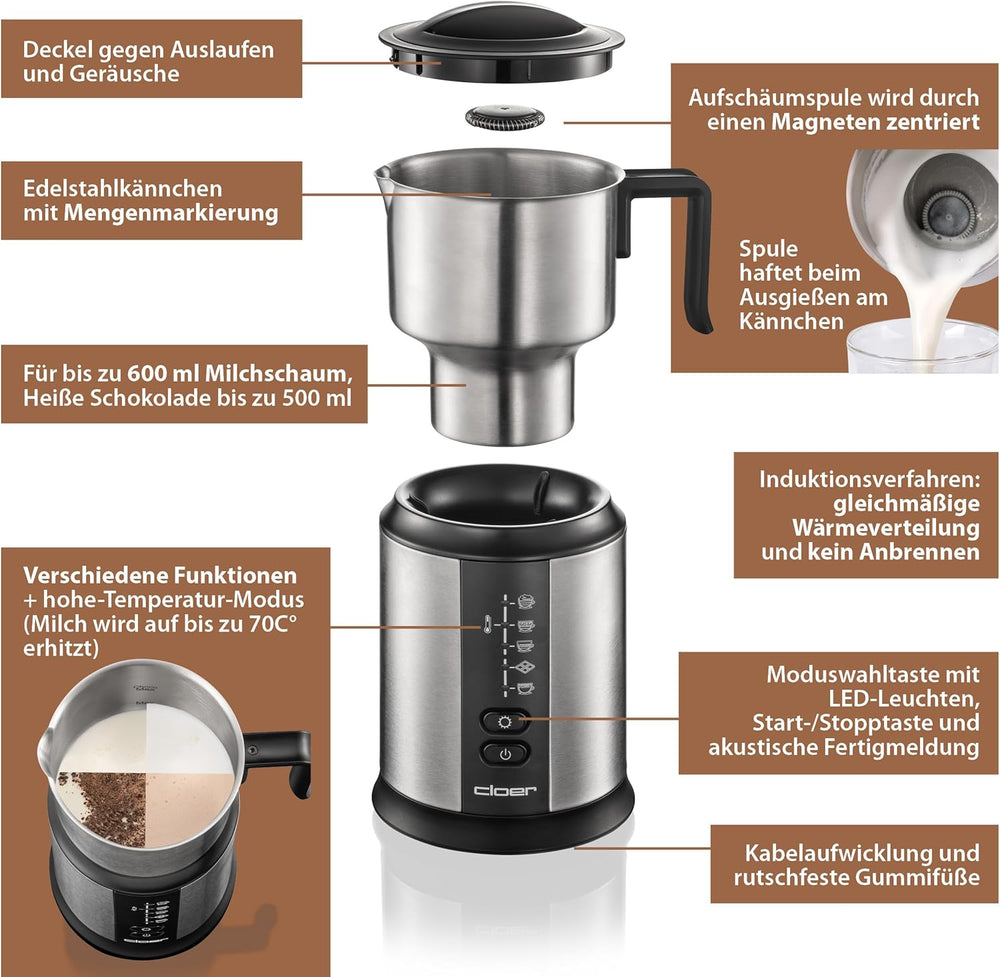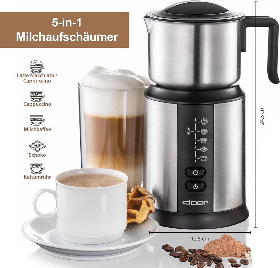 Cloer 7789 Induktions-Milchaufschäumer, für bis zu 450 ml, kalter oder warmer Milchschaum, heisse Sc