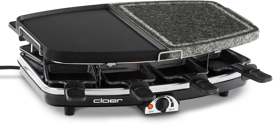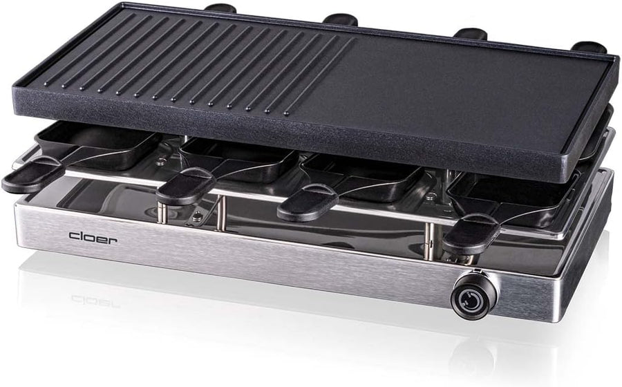 Cloer 6458 Raclettegrill mit Aluminium-Druckguss Platte, 1200 W, 8 antihaftbeschichtete Raclettepfän