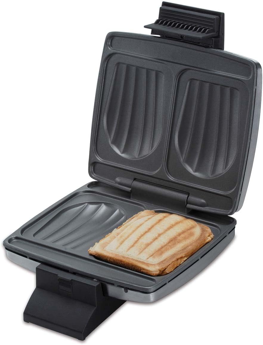 Cloer 6259 Sandwichmaker, 900 W für 2 diagonal geteilte Toasts, American Toasts, XXL Füllungen Silbe