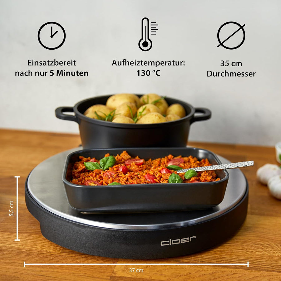 Cloer 6718 Warmhalteplatte mit Speicherstein, warmhalten von Speisen, 5 min Aufheizzeit, Temperatur