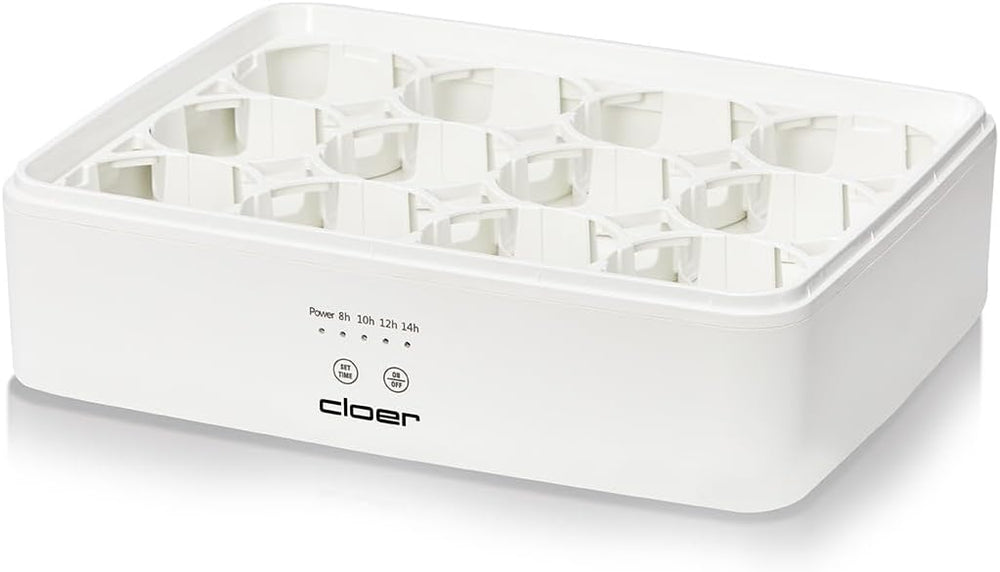 Cloer 9921 Joghurtbereiter für 12 Gläser, je 150 ml Fassungsvermögen, für Joghurt und Fermentkulture
