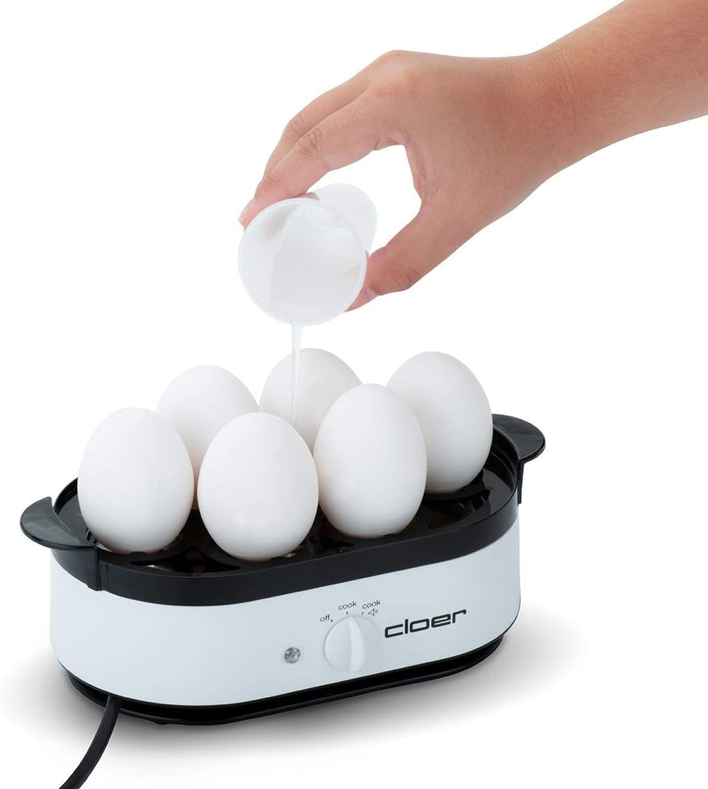 Cloer 6099 Eierkocher mit akustischer Fertigmeldung / 400 W / für 6 Eier / Einsätze für pochierte Ei