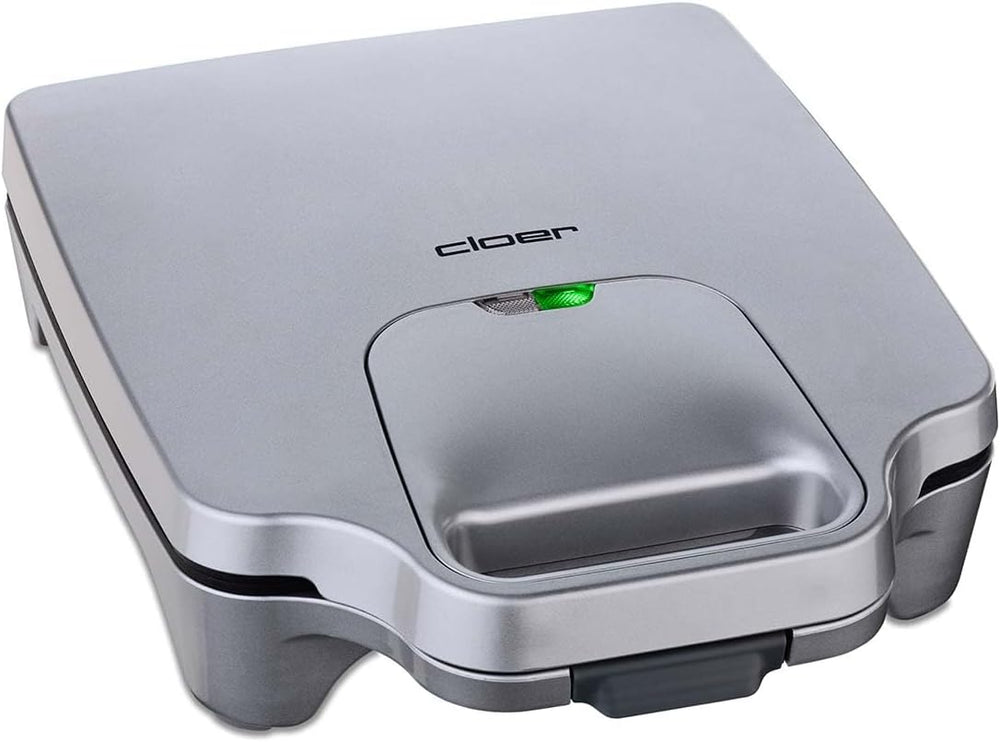 Cloer 6219 Sandwichmaker, 900 W für 2 diagonal geteilte Toasts, optische Fertigmeldung, silber Silbe
