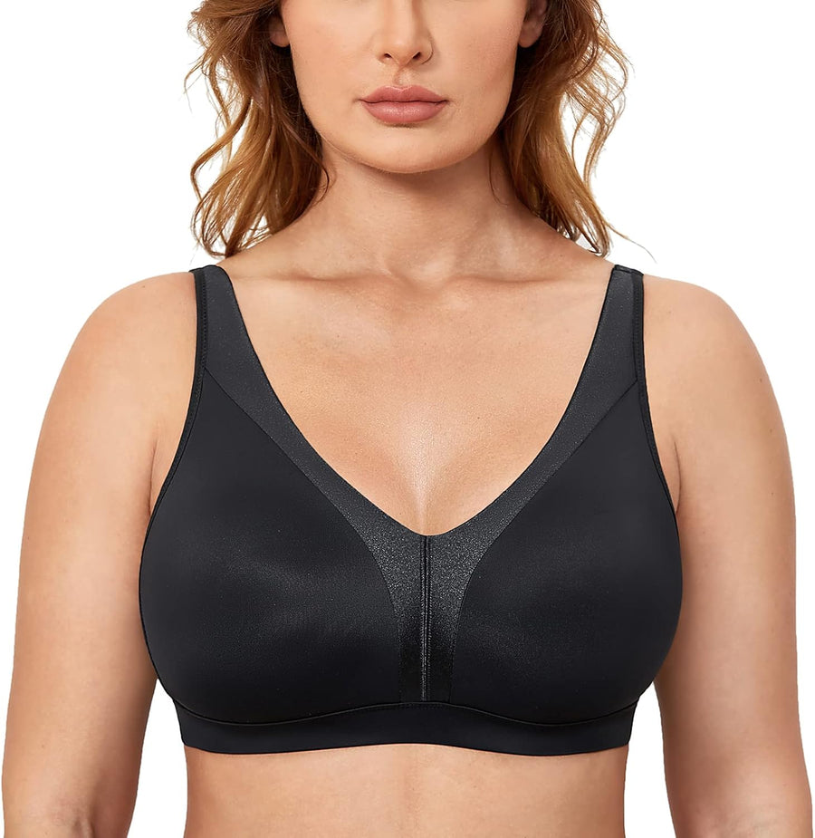 DELIMIRA Damen BH ohne Bügel Grosse Grössen Volle Abdeckung Glatter ohne Einlagen 100B Schwarz, 100B