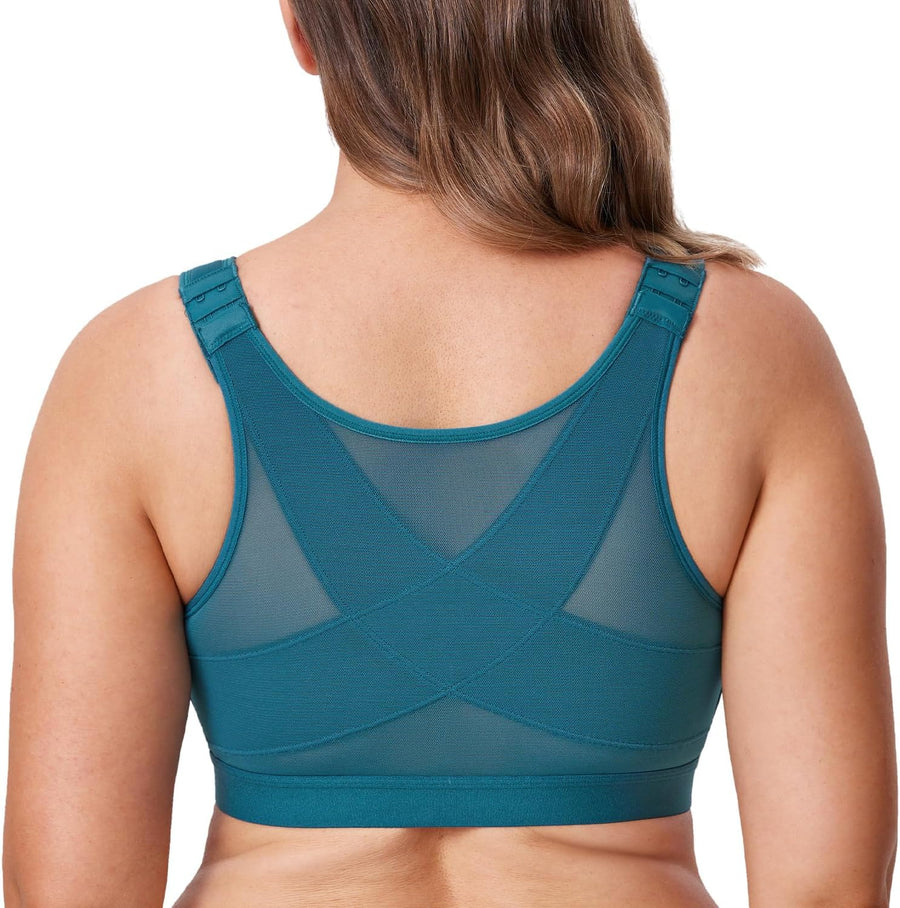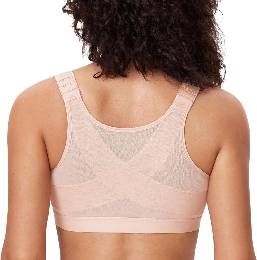 DELIMIRA Damen Haltungskorrektur Bügelloser BH mit Vorderverschluss Rückenstütze BHS Grosse Grössen