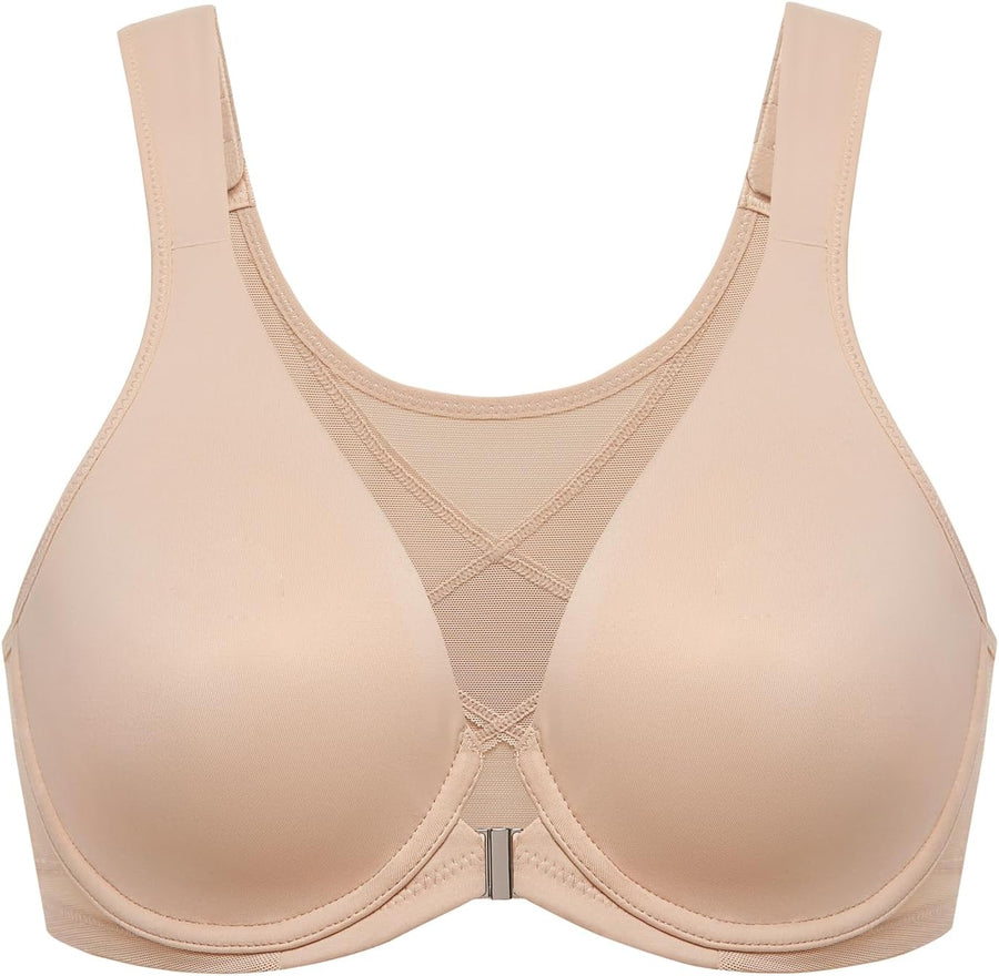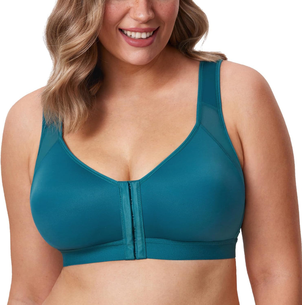 DELIMIRA Damen BH mit Vorderverschluss Grosse Grössen Haltungskorrektur Seamless BHS mit Bügel Tshir