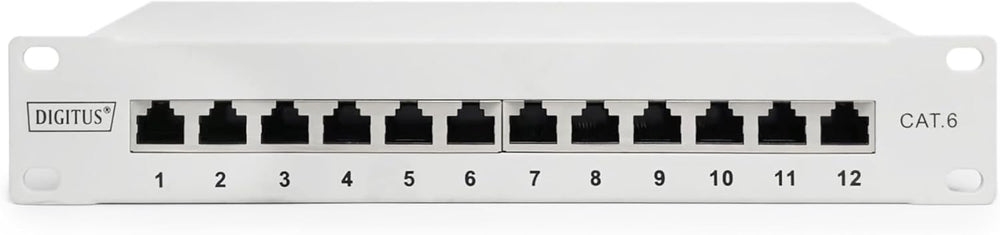 DIGITUS Cat-6 Patchpanel - 12 Ports - RJ45-Buchsen - 10-Zoll Rack-Mount 1HE - LSA Verteilerfeld - Ge
