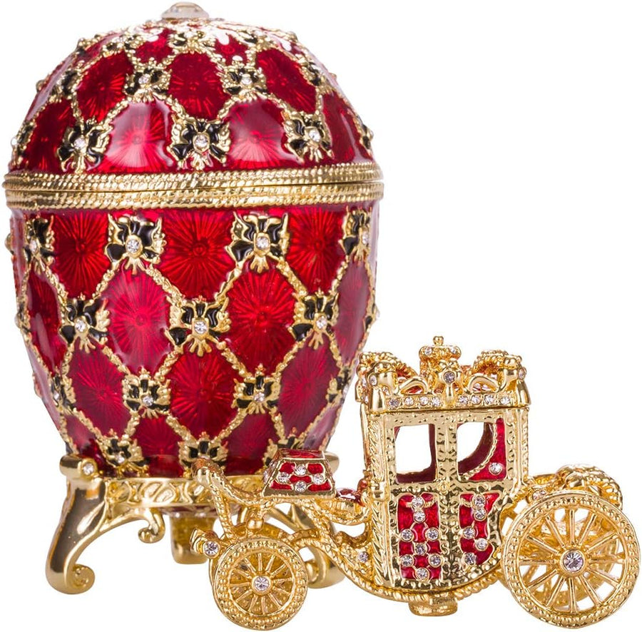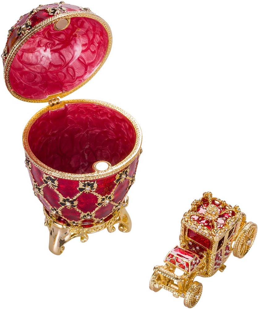Fabergé-Stil Krönungs Ei/Schmuckkästchen mit Kutsche 10 cm rot