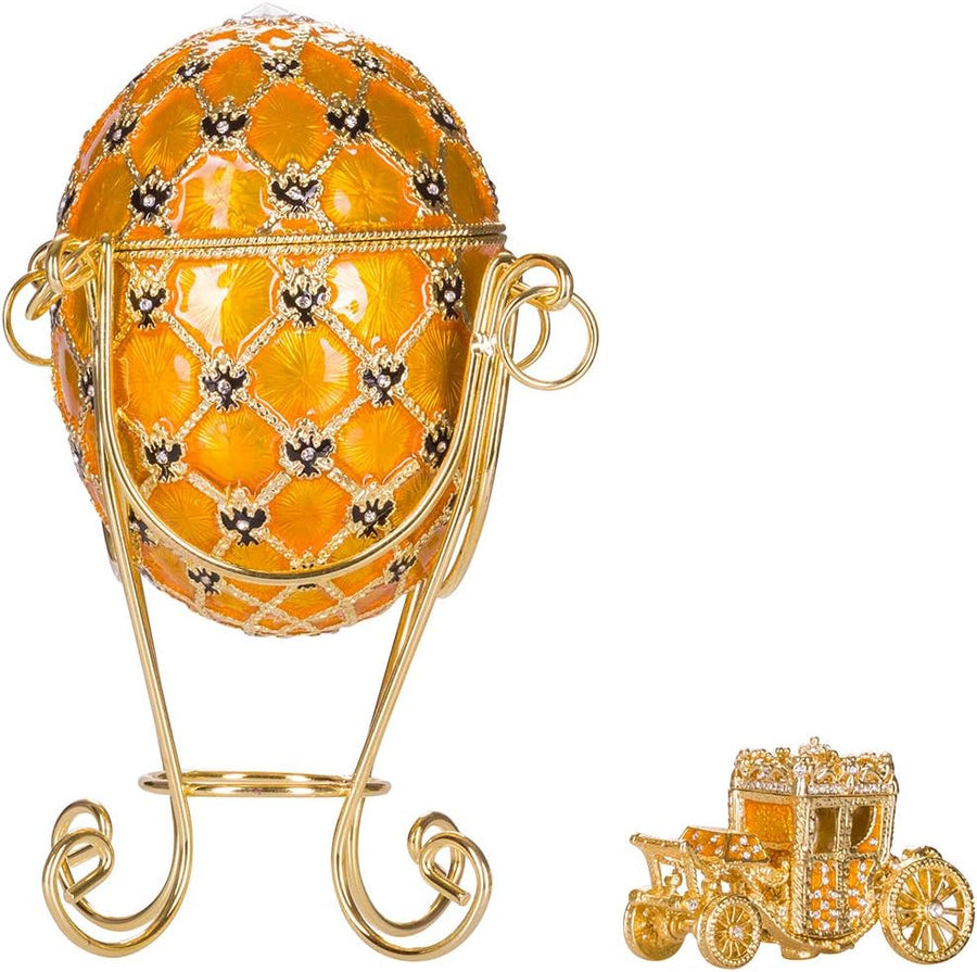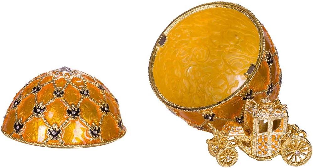 Fabergé-Stil Krönungs Ei/Schmuckkästchen mit Kutsche 19 cm gelb