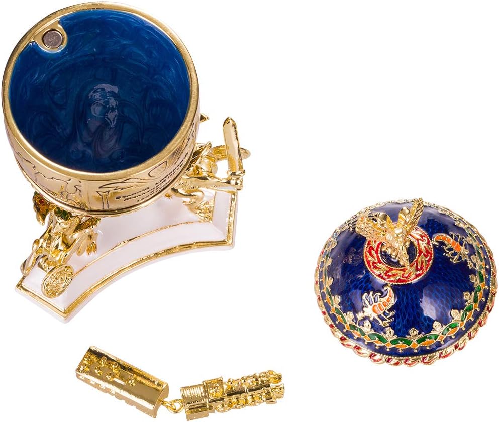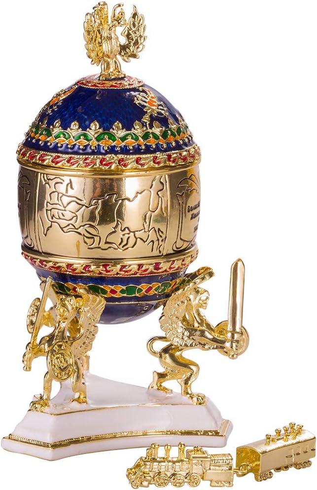 Transsibirisches Eisenbahn Fabergé-Stil Ei/Schmuckkästchen 12,5 cm blau