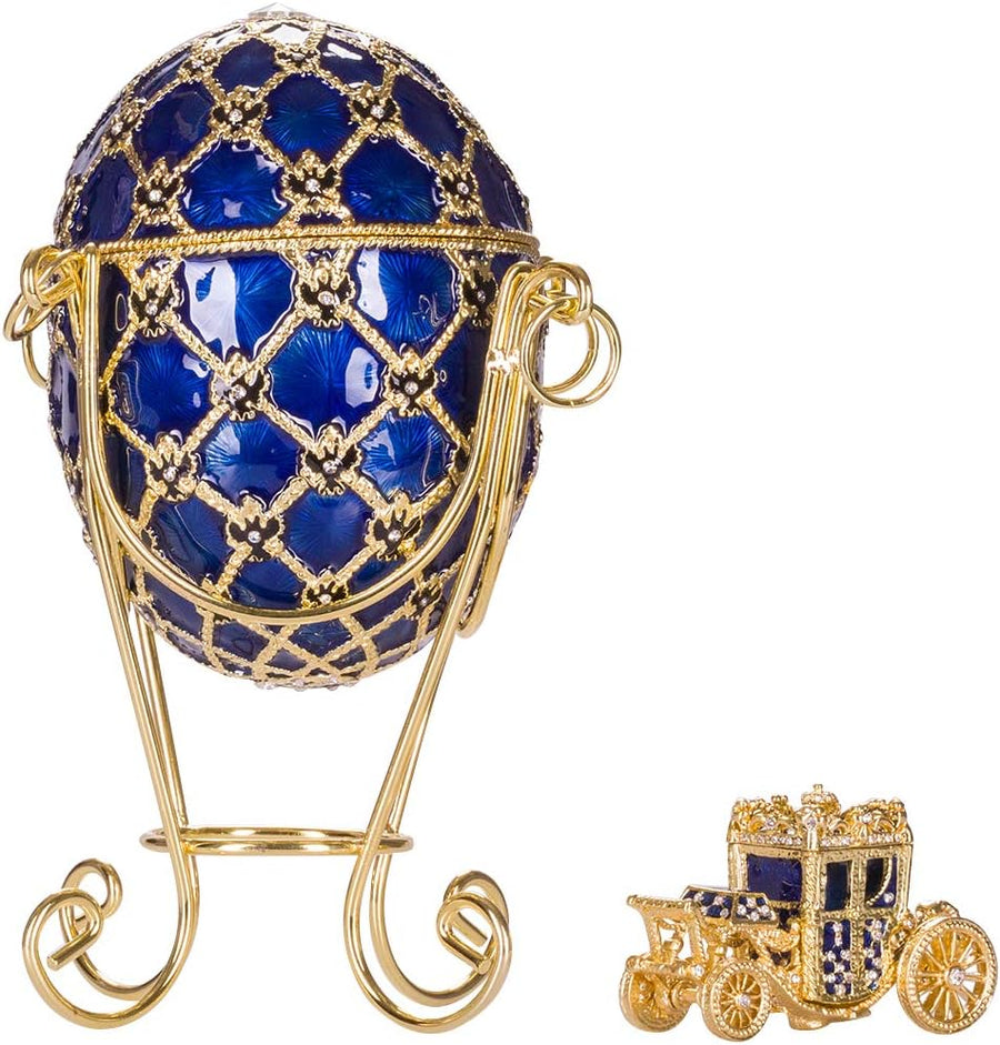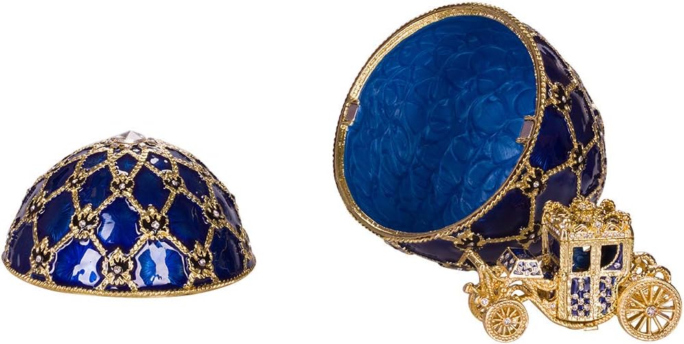 Fabergé-Stil Krönungs Ei/Schmuckkästchen mit Kutsche 19 cm blau