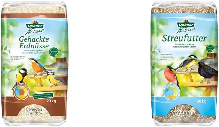 Dehner Natura Wildvogelfutter, gehackte Erdnüsse, 20 kg & Natura Wildvogelfutter, Streufutter, 20 kg