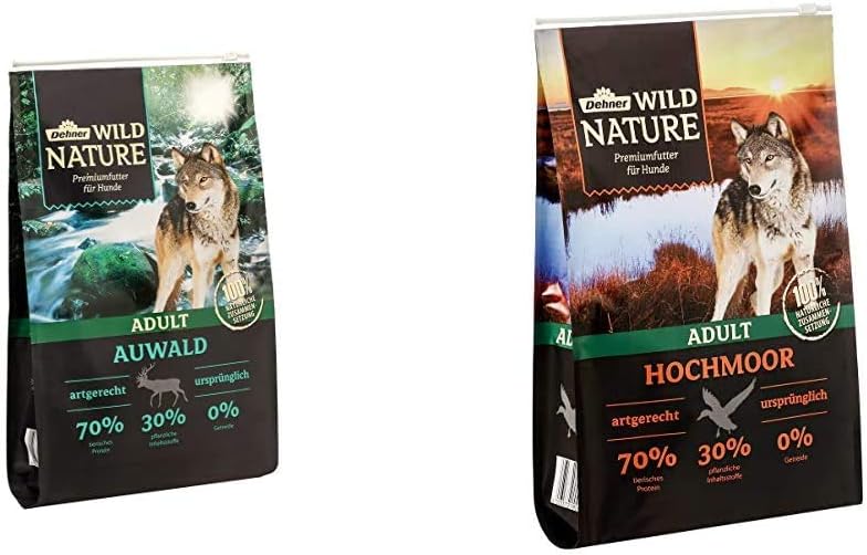 Dehner Wild Nature Hundetrockenfutter Adult, Auwald, 4 kg & Wild Nature Hundetrockenfutter Adult, Ho