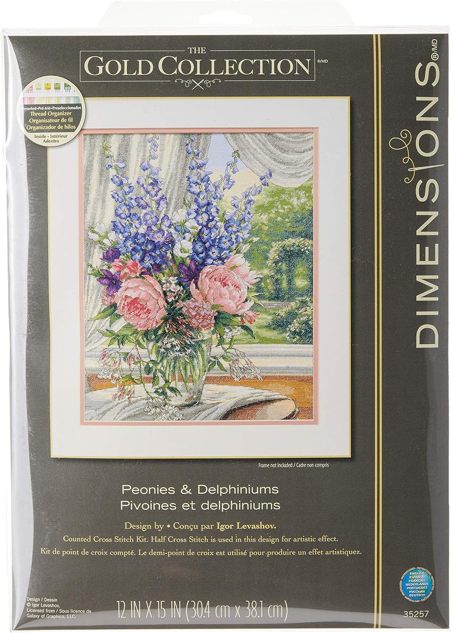 Dimensions Gezählter Kreuzstick Set, Peonies and Delphiniums Pfingstrosen und Rittersporn, Pfingstro