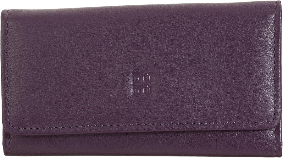 DUDU Klassische mehrfarbige Schlüsselmappe in Leder mit 6 Haken Deep Purple, Deep Purple