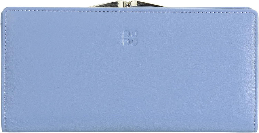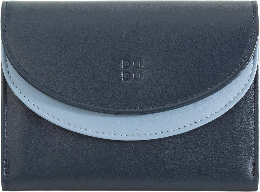 DUDU Damen-Gedldbörse Echtleder RFID mit Münzfach. Portamonnaie Farbig mit Doppelklappe Kreditkarten