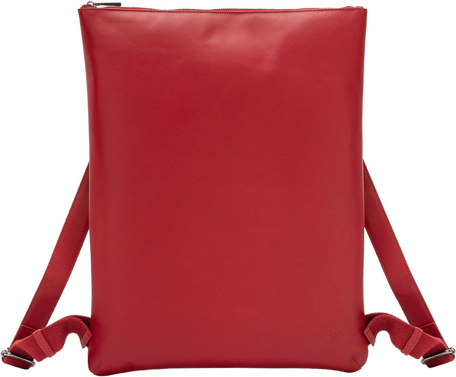 DuDu Herren Rucksack schmal und elegant in echtem, weichem Leder mit Reissverschluss Rot, Rot