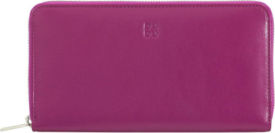 DUDU Grosse Bunte Damenbrieftasche RFID in echtem Leder mit Rundum - Reissverschluss Fuchsia, Fuchsi