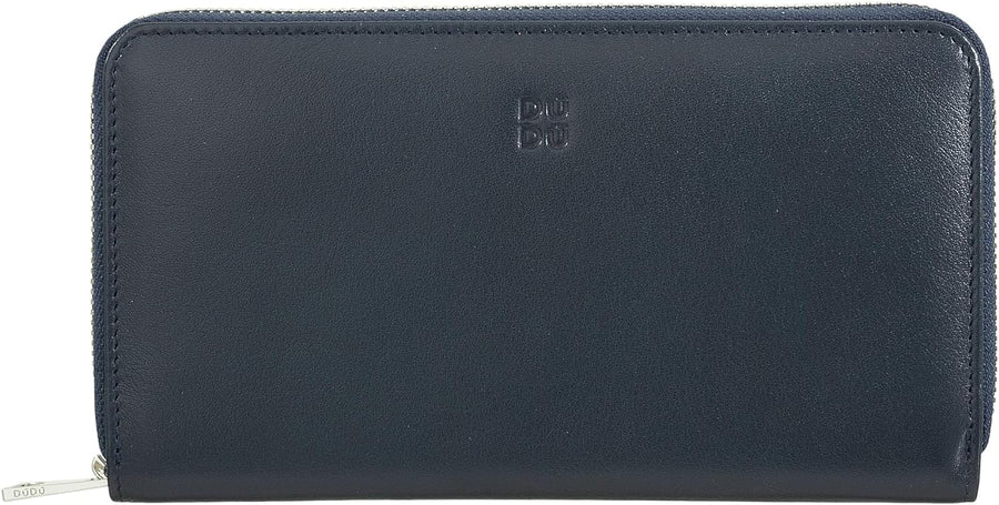 DUDU Grosse Bunte Damenbrieftasche RFID in echtem Leder mit Rundum - Reissverschluss Navy, Navy