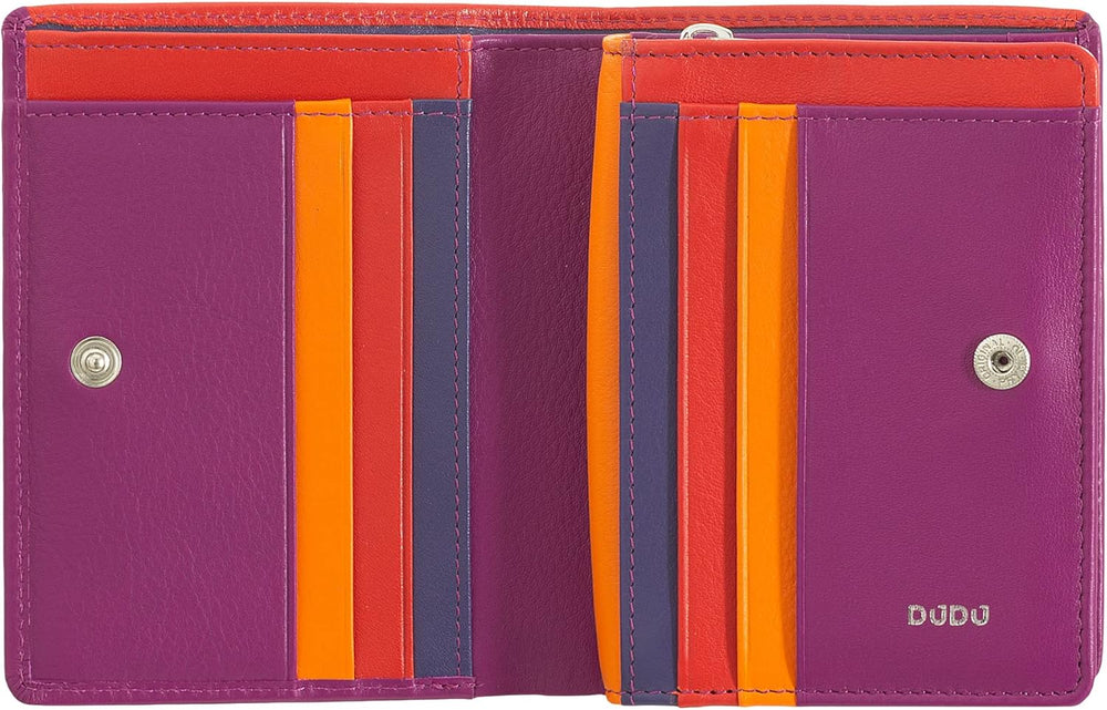 DUDU Kleine Damen-Brieftasche aus farbigem Leder mit Kartenfächern und Münzfach mit Reissverschluss