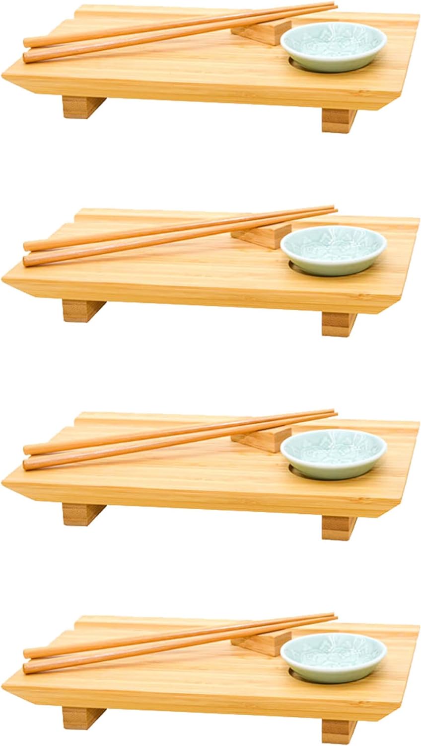DuneDesign Sushi Geschirr Set 4 Personen - 27x16x4 Sushi Brett Bambus Bank Geschirr Komplettset Sush