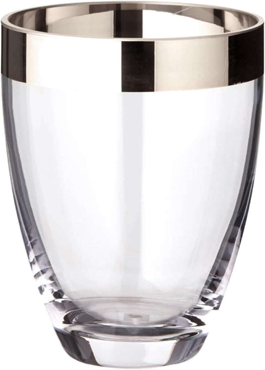 EDZARD Windlicht Molly, Kerzenglas aus mundgeblasenem Kristallglas mit Platinrand, Höhe 15 cm, Durch