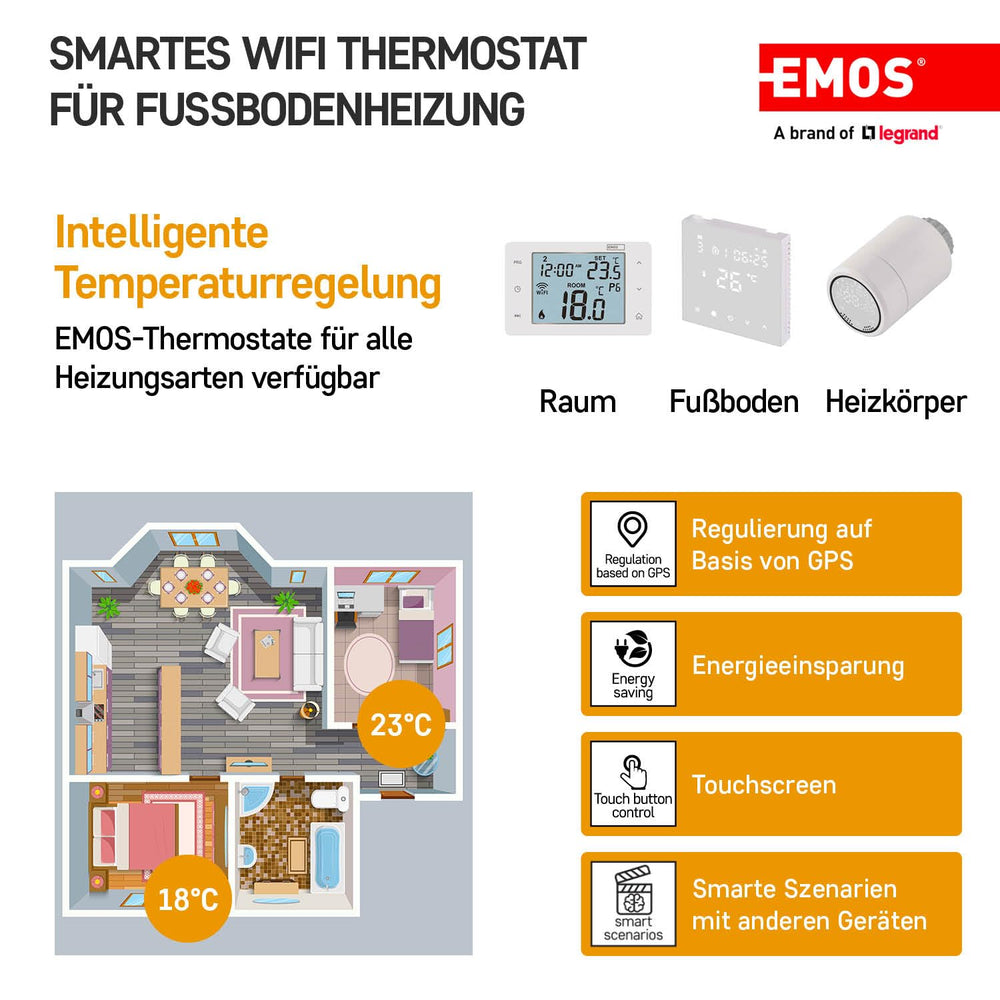 EMOS GoSmart WiFi Raumthermostat für Fussbodenheizung mit App, programmierbarer Smart-Thermostat ink