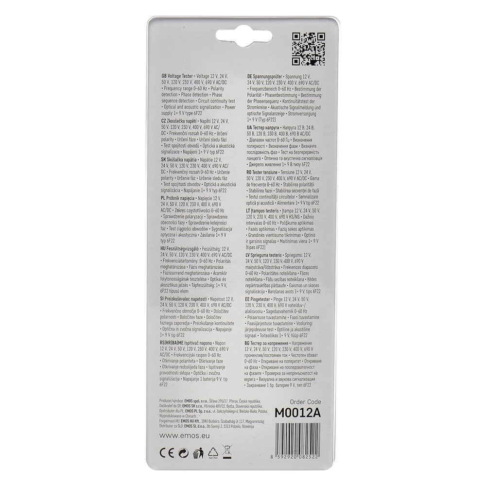 EMOS Spannungsprüfer und Phasentester CAT IV 600 V, AC/DC Volttester/digitaler Spannungstester 6V -