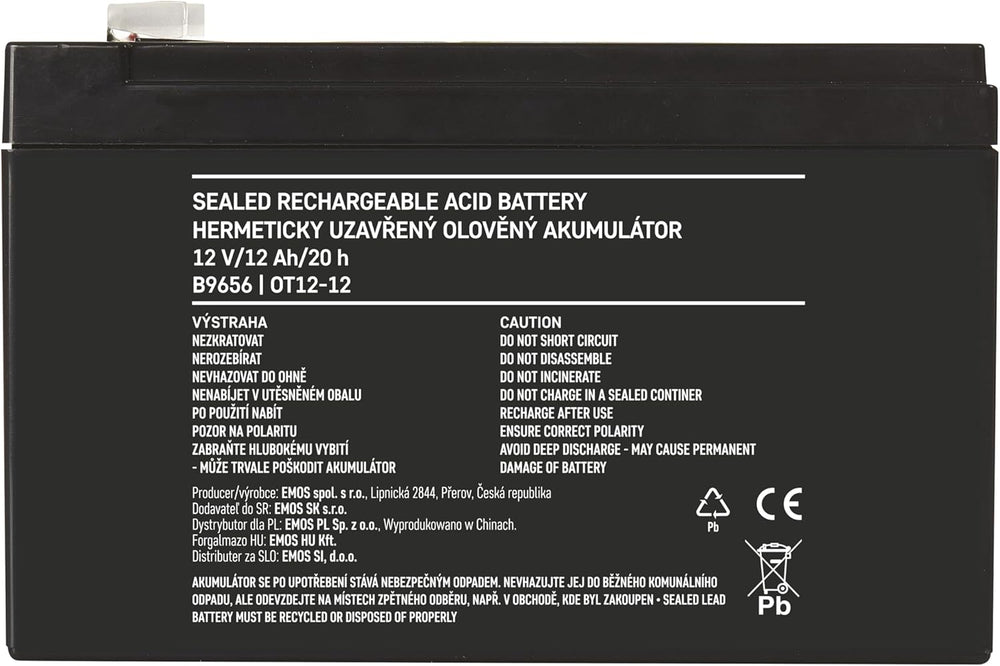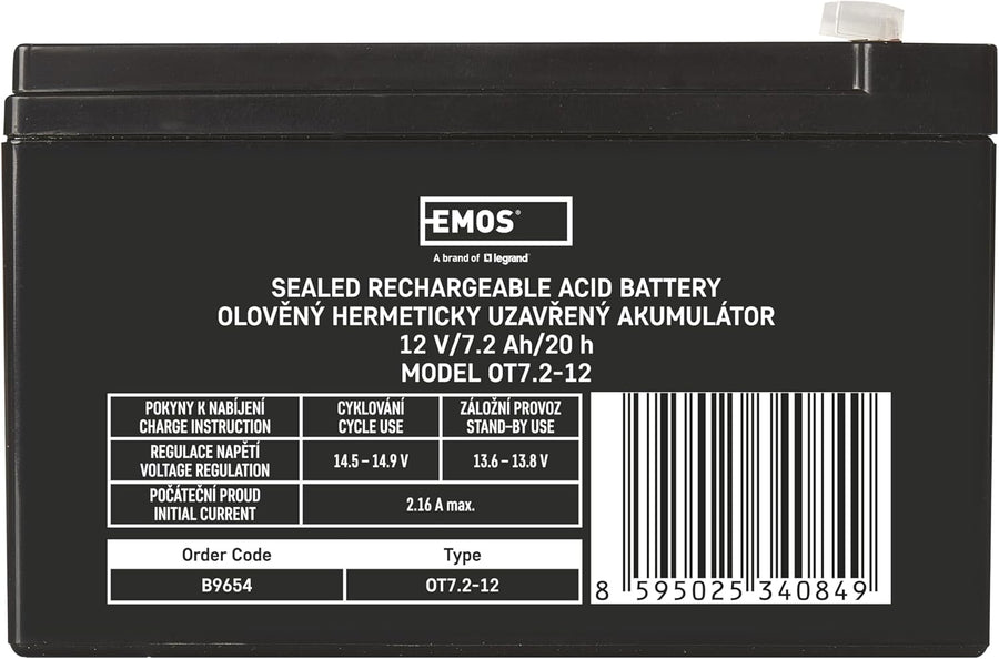 EMOS Wartungsfreier Bleiakku/Bleiakkumulator für USV-Anlagen, Notbeleuchtung, Alarmsysteme, Brandmel