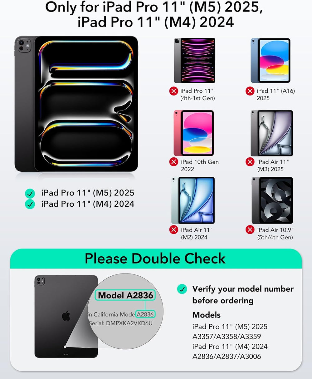 ESR Hülle mit Tastatur für iPad Pro 11" (M5/M4) 2025/2024 – Magnetisch abnehmbare Tastatur, Hoch- un