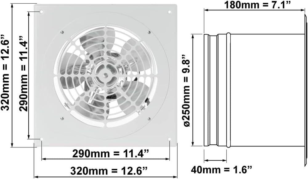 Ø 250mm Wand befestigter Abluftventilator Rohrlüfter Wand Niederdruck Ventilator Wandflansch Zu-Ablu
