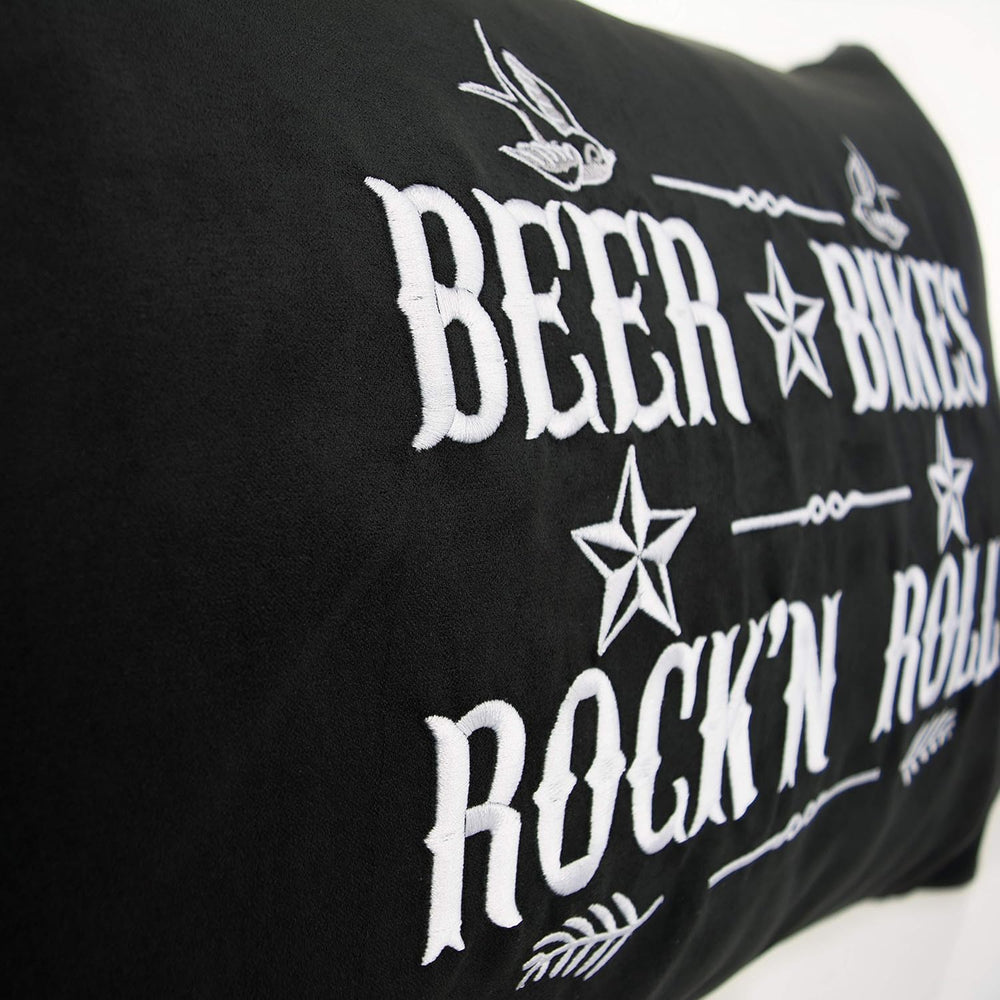 Lustiges Kissen Beer, Bikes and Rock'n Roll Kissenbezug gefüllt | MC Dekokissen mit Füllung Wohnzimm