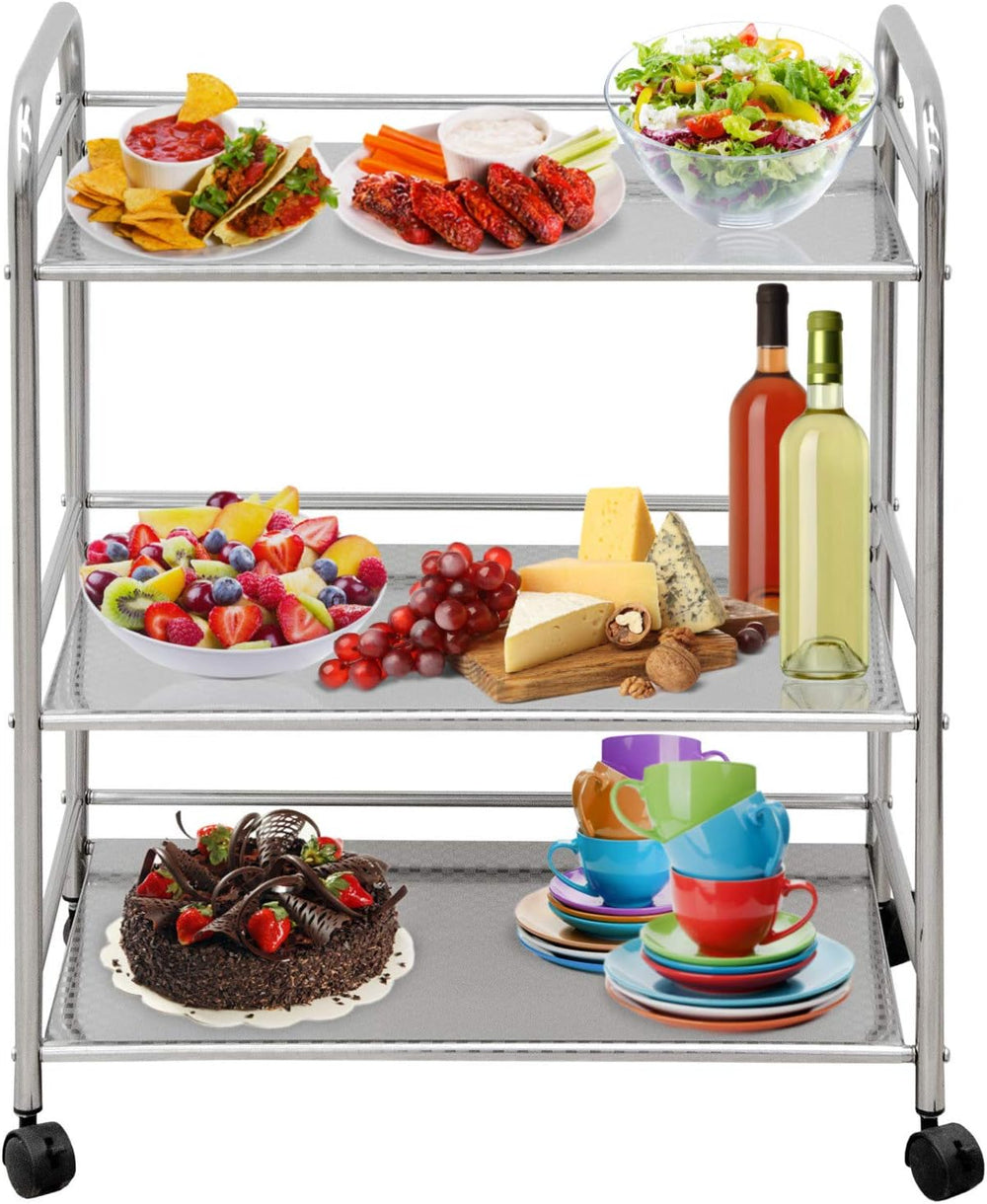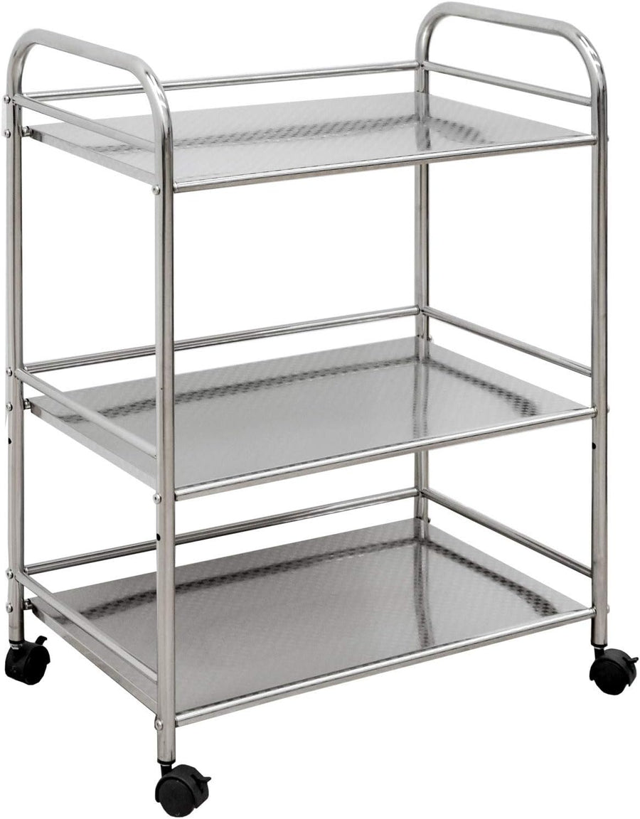 EYEPOWER Edelstahl Küchenwagen 3 Etagen 60x35x77 cm Servierwagen Bad-Rollwagen Silberfarben/Grau, Si