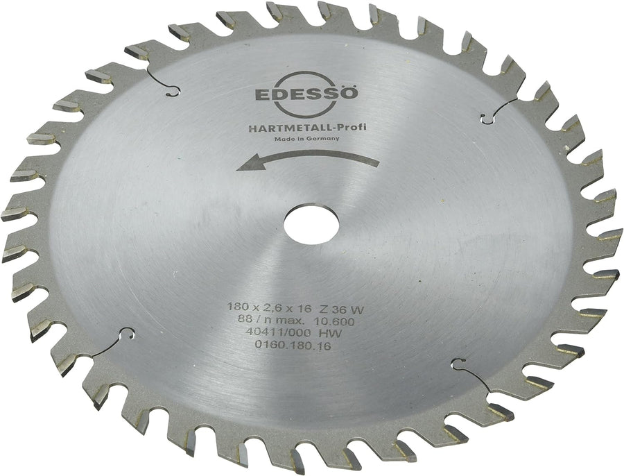 Edessö 16018016 HM-Kreissägeblatt Profi-Mehrzahn HW, Z=36 W, 180 x 2,6/1,6 x 16 mm, Silber
