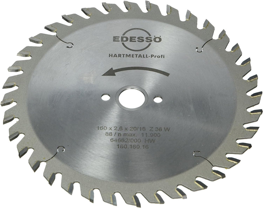 Edessö 16016016 HM-Kreissägeblatt Profi-Mehrzahn 2/6/32 HW, Z=36 W, 160 x 2,6/1,6 x 20/16 mm, Silber