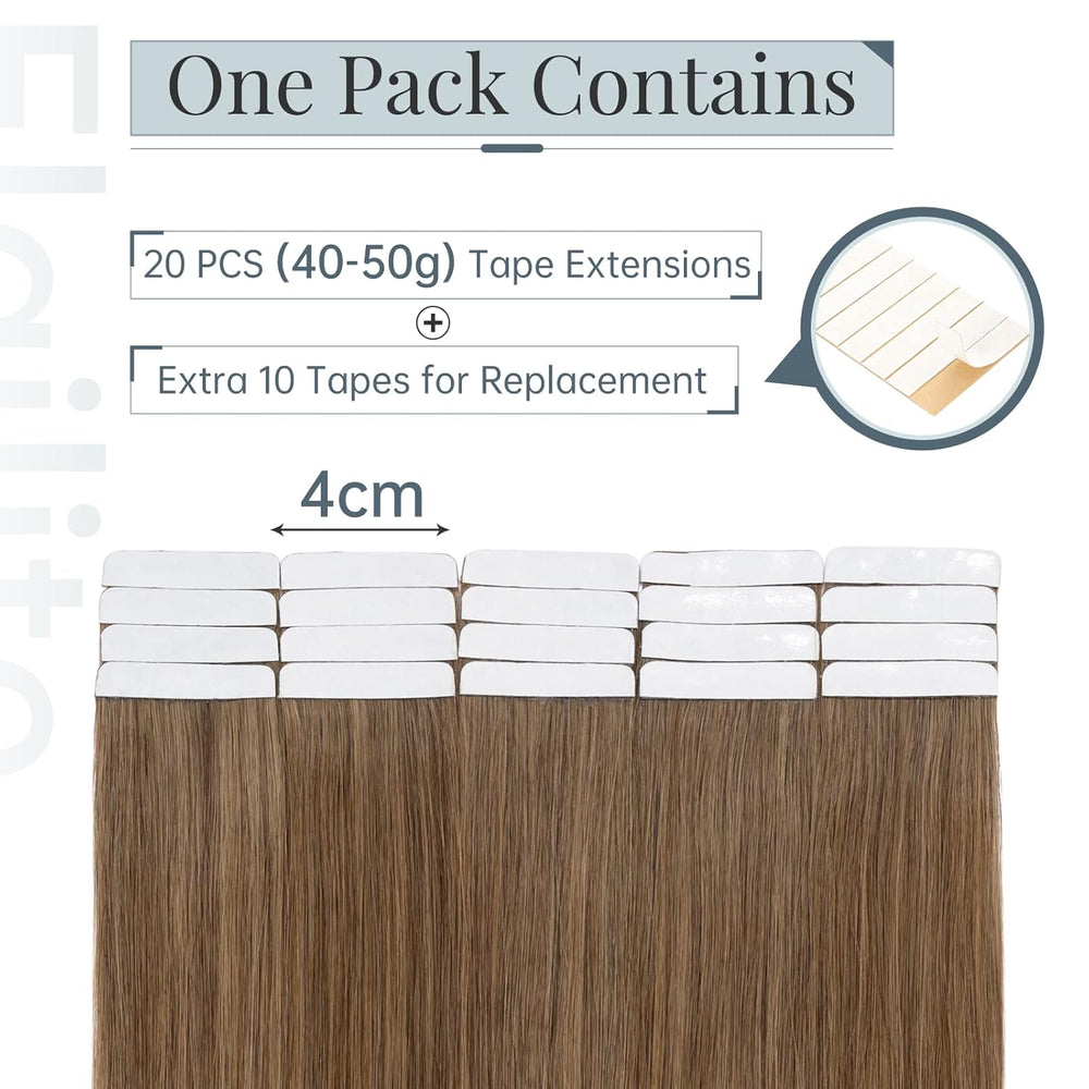 Elailite Echthaar Extensions Tape in #6 Mittelbraun 20 stück Invisible Kleber Haarverlängerung Klebe