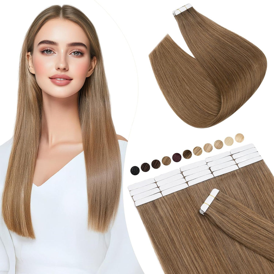 Elailite Echthaar Extensions Tape in 20 Stück Kleberband #2A Leberbraun, 40cm Haarverlängerungen Uns