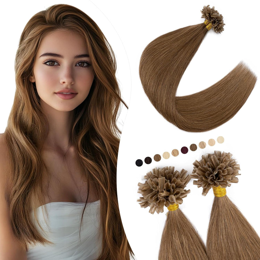 Elailite Echthaar Extensions Bondings Schokobraun 25 Strähnen 25g Haarverlängerung Glatt U Tip Kerat