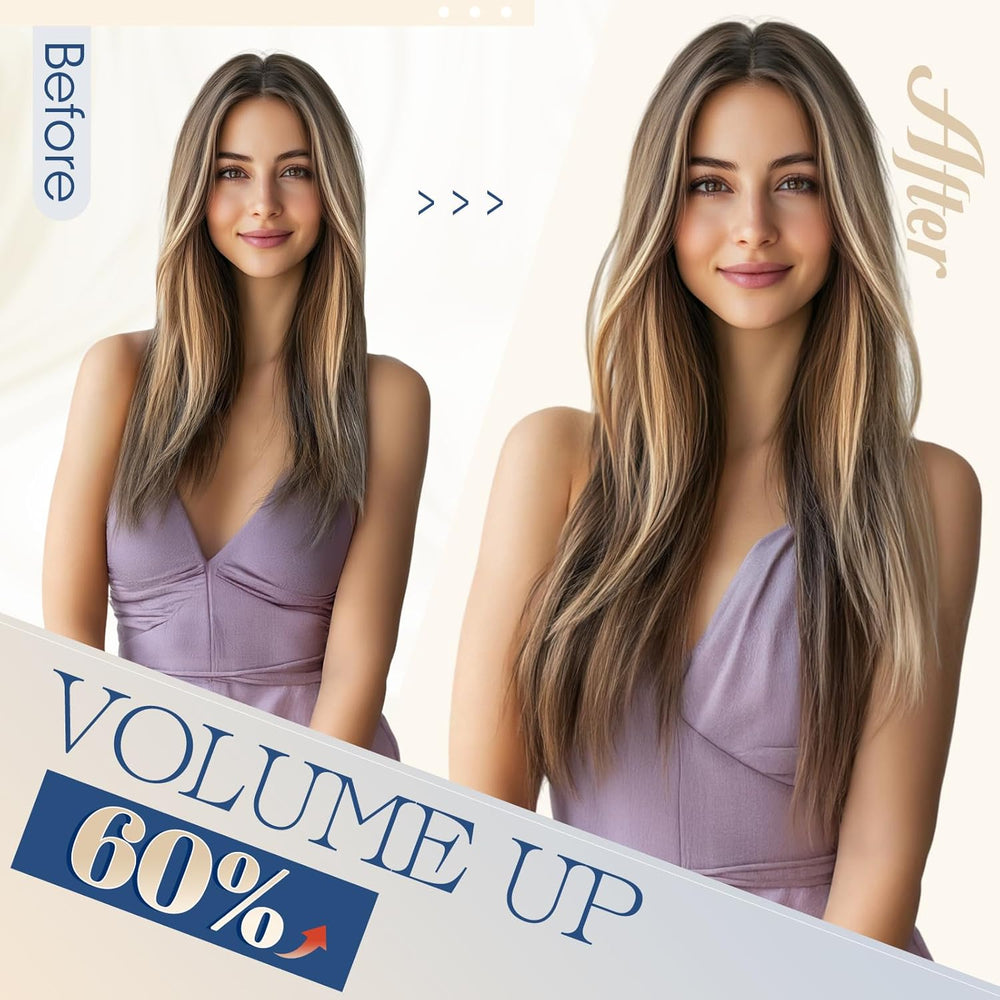 Elailite Echthaar Extensions Clip in #6 Hellbraun, 5 Tressen Remy Haarverlängerung mit 12 Clips, 60c