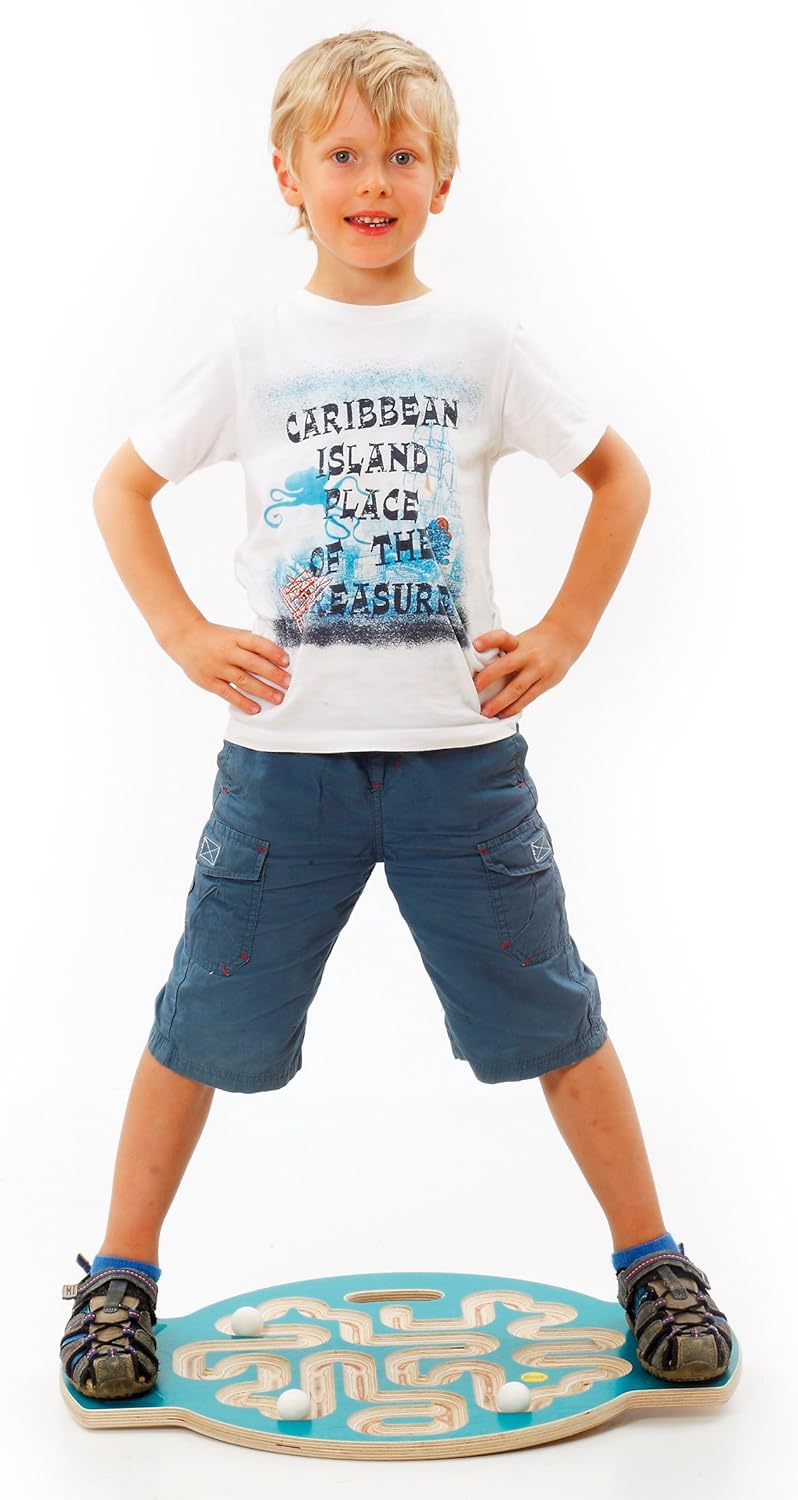 Erzi 46372 Trackboard Labyrinth aus Holz, Fördert Geschicklichkeit und Balance Mehrfarbig, Mehrfarbi