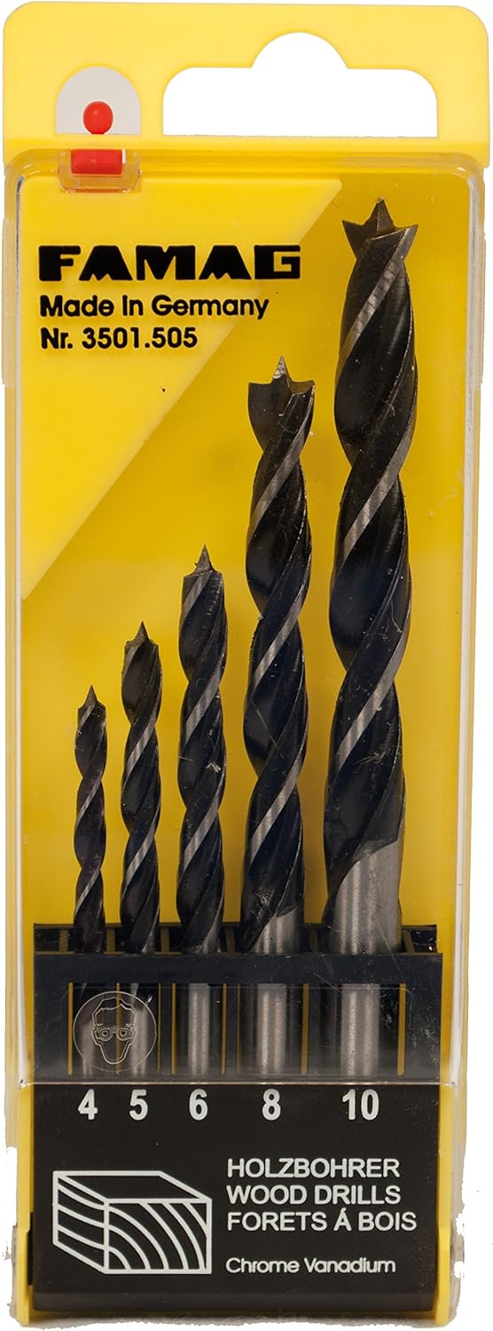 FAMAG 3501 Holzspiralbohrer-Satz CV 5-teilig in Kunststoff Box Ø 4,5,6,8,10mm - 3501.505 Satz 5-teil