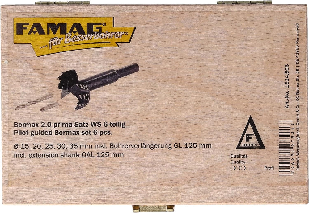FAMAG Bormax 2.0 prima Staketenbohrersatz 6-teilig WS D=15,20,25,30,35mm im Holzkasten mit Bohrverlä