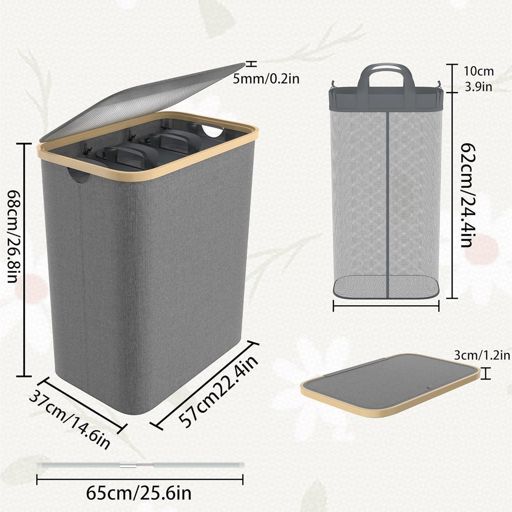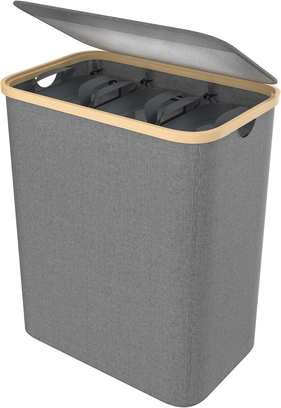 FIVMEN Wäschekorb 3 Fächer Wäschesammler Wäschesortierer mit Deckel und 3 Waschbarer Wäschesack Wäsc