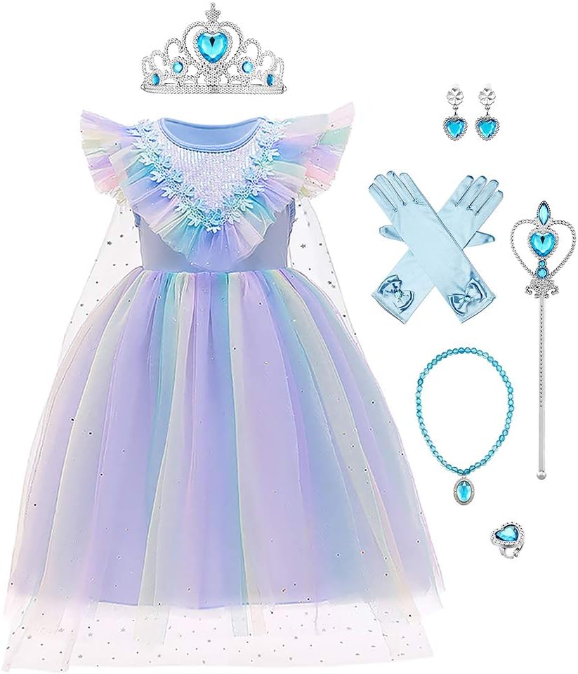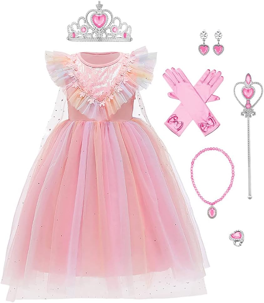 FYMNSI Mädchen Prinzessin Kostüm Kleid Umhang mit Zubehör Weihnachten Halloween Fasching Karneval Ve