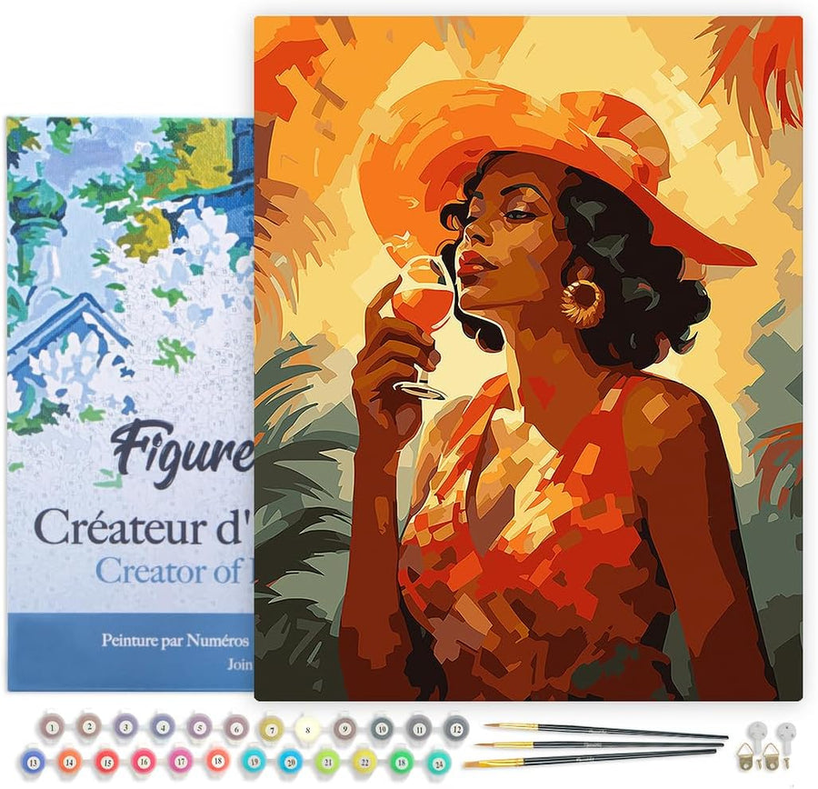 Figured'Art Malen Nach Zahlen Erwachsene Mit Rahmen Art-Deco-Frau mit einem Glas - Paint by Numbers