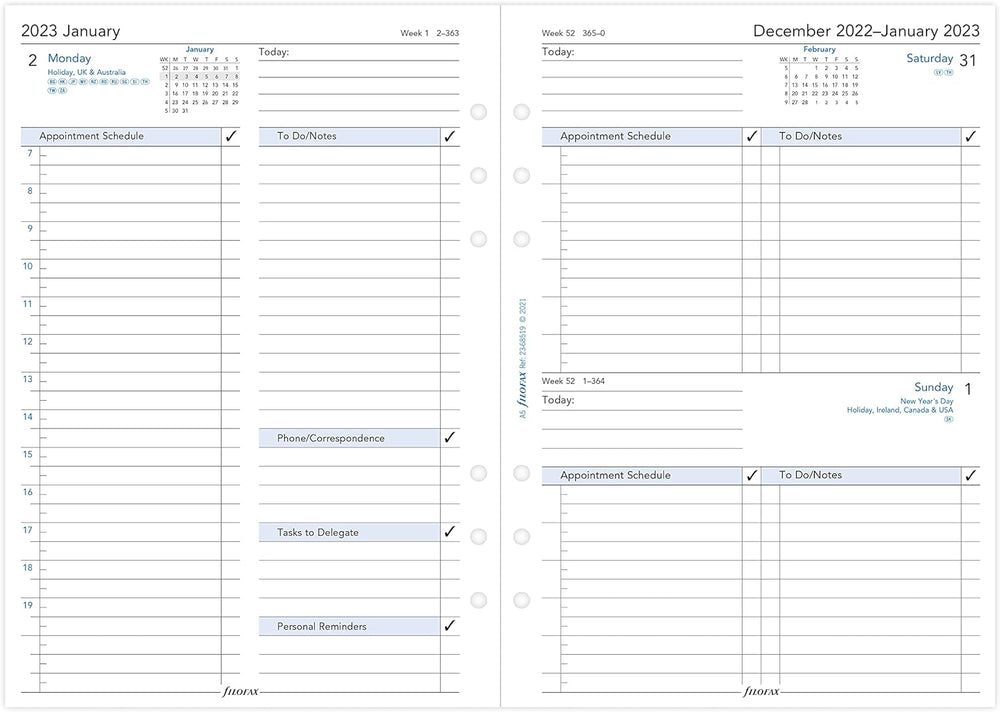 Filofax A5 Tag pro Seite 5 Sprachen Terminplaner – 2024
