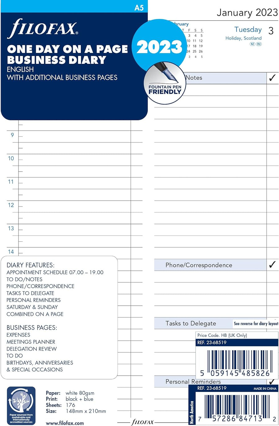 Filofax A5 ENGLISH DAY/PAGE BUSINESS/APPTS 2023, 23-68519, White
