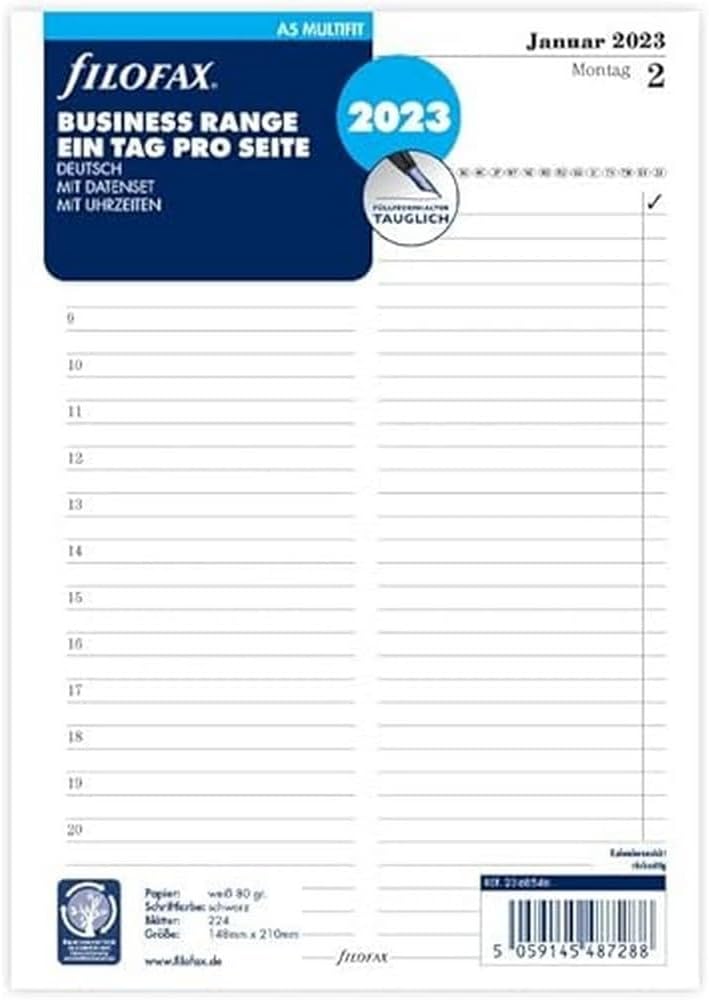 Filofax A5 Multi 1 Tag auf 1 Seite (deutsch)2023, 23-68546, White Single, Single