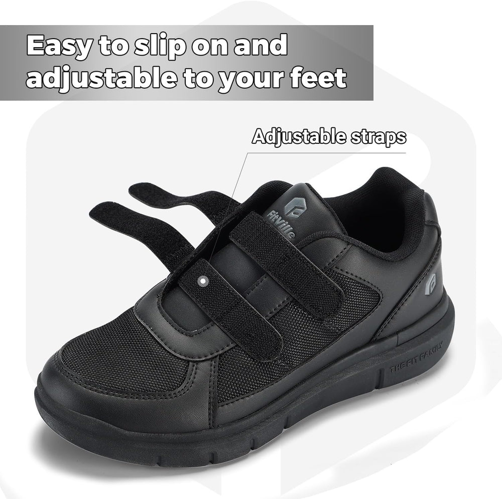 FitVille Herren Easytop Duo Strap Schuhe V3 Extra Weit Turnschuhe Sneaker 45 EU X-Weit Schwarz, 45 E